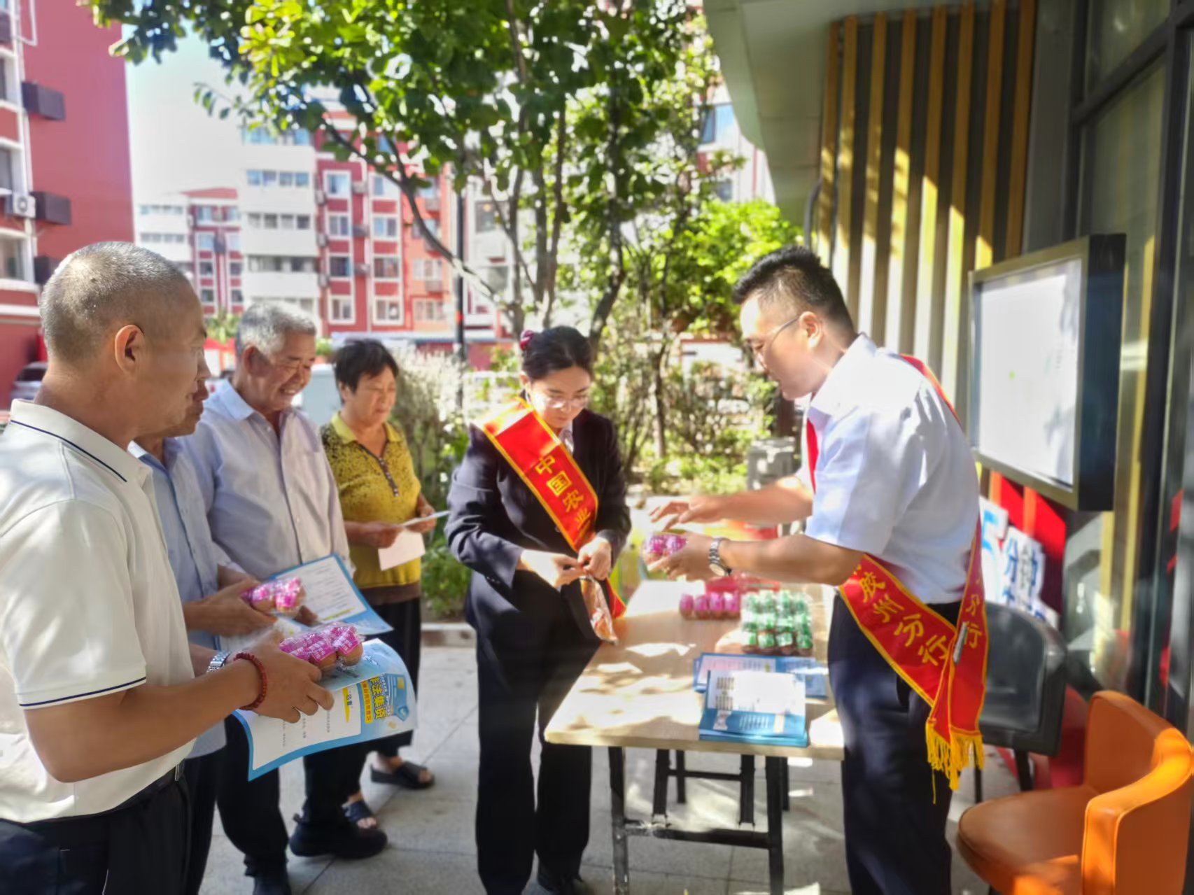 9月17日中午,水寨花园社区党群服务中心门前格外热闹。胶州农行常州路支行的工作人员与党群服务中心工作人员携手,共同开展了一场以“保障金融权益 助力美好生活”为主题的消费者金融权益宣传活动,将金融知识“打包”送进社区,为秋日里的社区增添了一份温暖与安全。